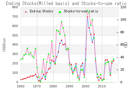 Stocks Finales(arroz sin cáscara) y Razón de Uso-de-Stocks